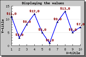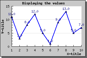 As a final easy modification we can enable the display of the data value above each data point. The value is represented by the 'value' property in the plot. (You can read more about the possibilities of the display value in the class reference.)